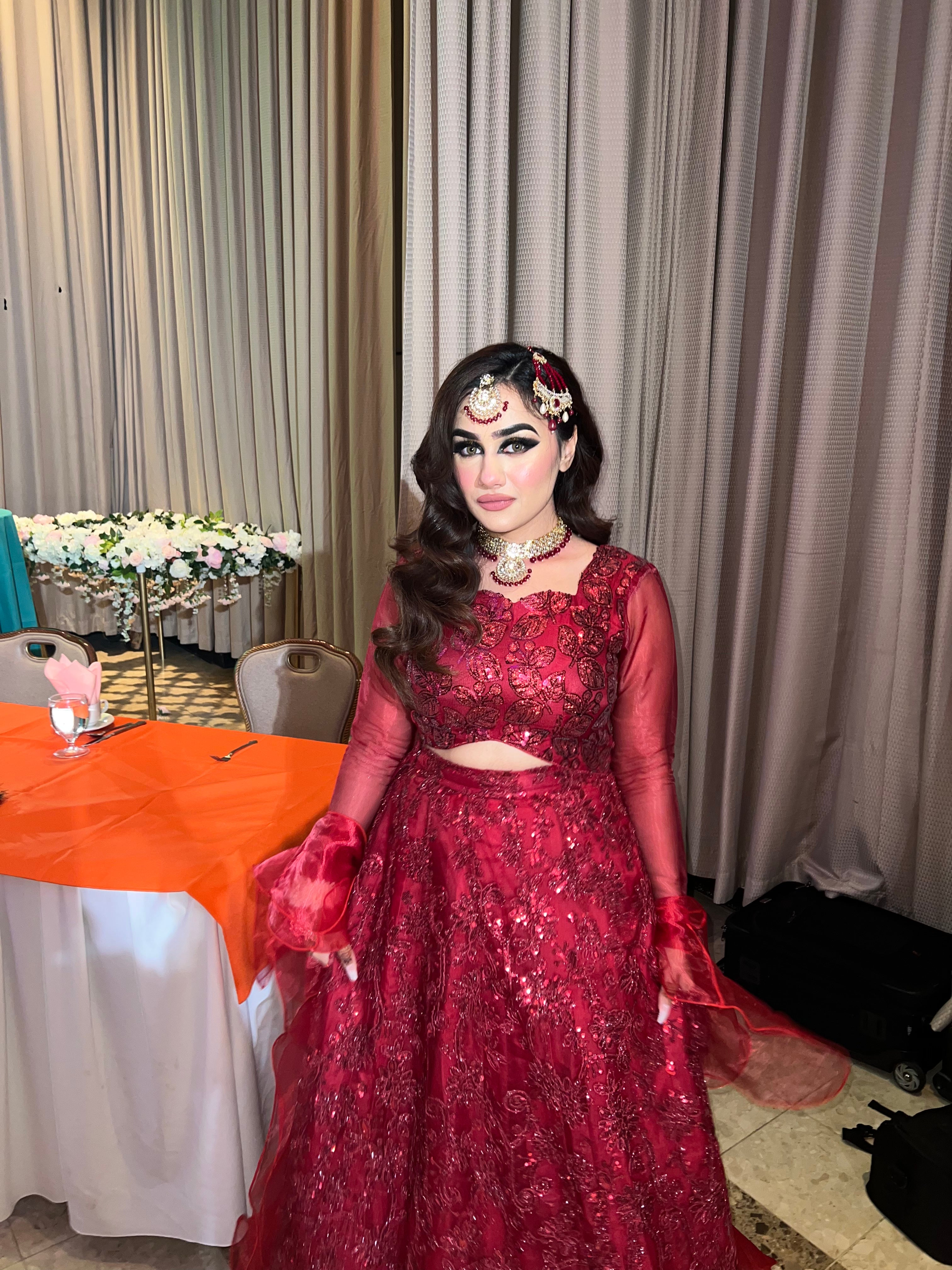Choli (Blouse): Complementing the lehnga is the matching choli, also embellished with dazzling red sequins. The fitted bodice is designed to accentuate your figure, featuring sequin detailing that adds a touch of sparkle and sophistication. The choli seamlessly integrates with the lehnga, completing the ensemble with a cohesive and glamorous look.