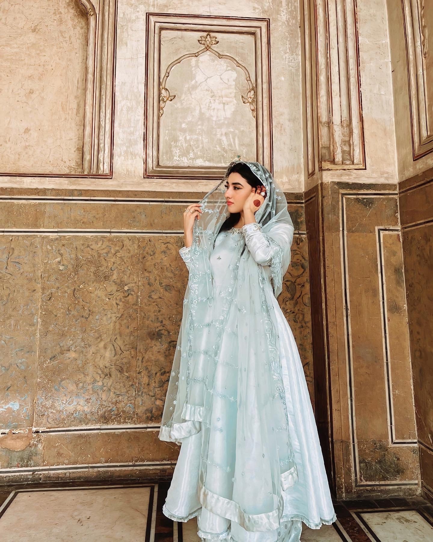 Hand Work: Adorned with intricate hand-embroidery, the pishwas features delicate patterns that glisten with the artistry of skilled artisans. The embroidery, combining traditional motifs with modern elegance, enhances the overall grandeur of the outfit.