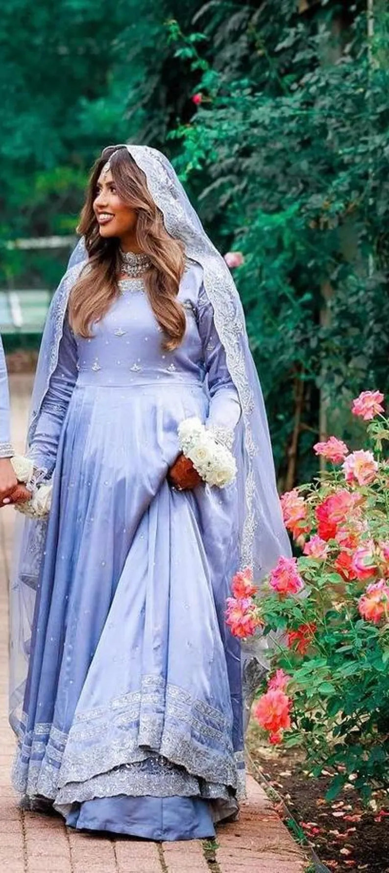 An enchanting bridal ensemble featuring a hand-worked pishwas paired with a flowing lehenga and a matching dupatta. Intricately detailed craftsmanship and luxurious fabrics come together to create a regal silhouette, perfect for the bride who wants to shine with timeless elegance on her special day.