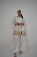 A shimmering sitara dupatta, embellished with scattered sequins and a finely embroidered golden border, brings the entire look together — making it ideal for moonlit soirées and heartfelt celebrations.